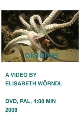 Mit der Handkamera aufgenommene Sequenzen des tanzenden Oktopus aus dem Aquarium in Neapel werden zusammengestellt und in einem kleinen Dvd- Abspielgerät gezeigt, sodass der Oktopus scheinbar bis ins Unendliche durch Raum und Zeit tanzt. Footage, which was taken by a small hand camera of the dancing octopus in the Aquarium in Naples, is arranged and projected in a small DVD Player, so that it looks as if the octopus would do his dancing between time and space forever. Dvd, Pal, 4 Minuten |